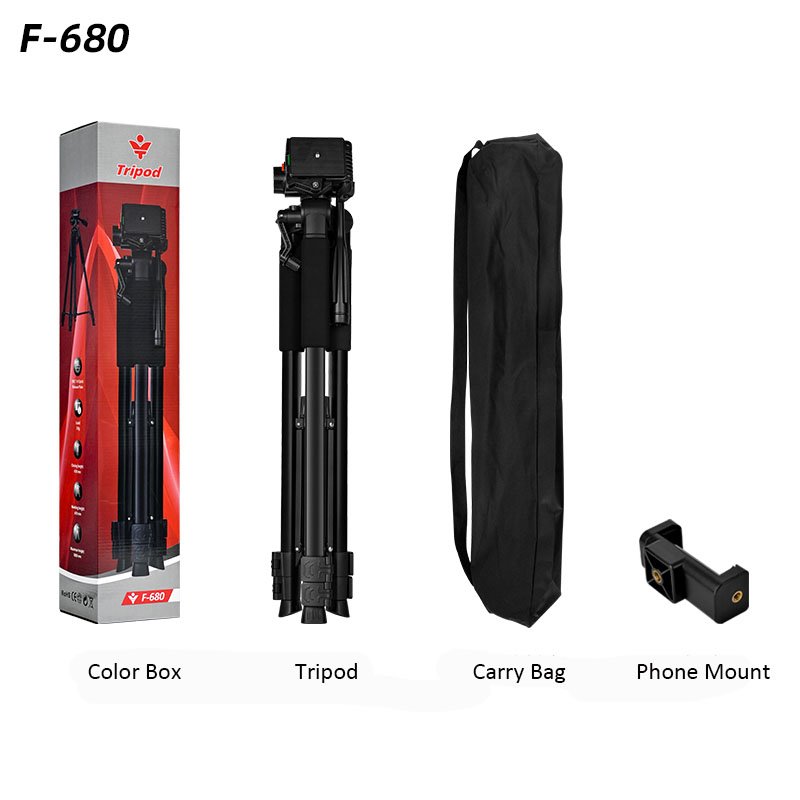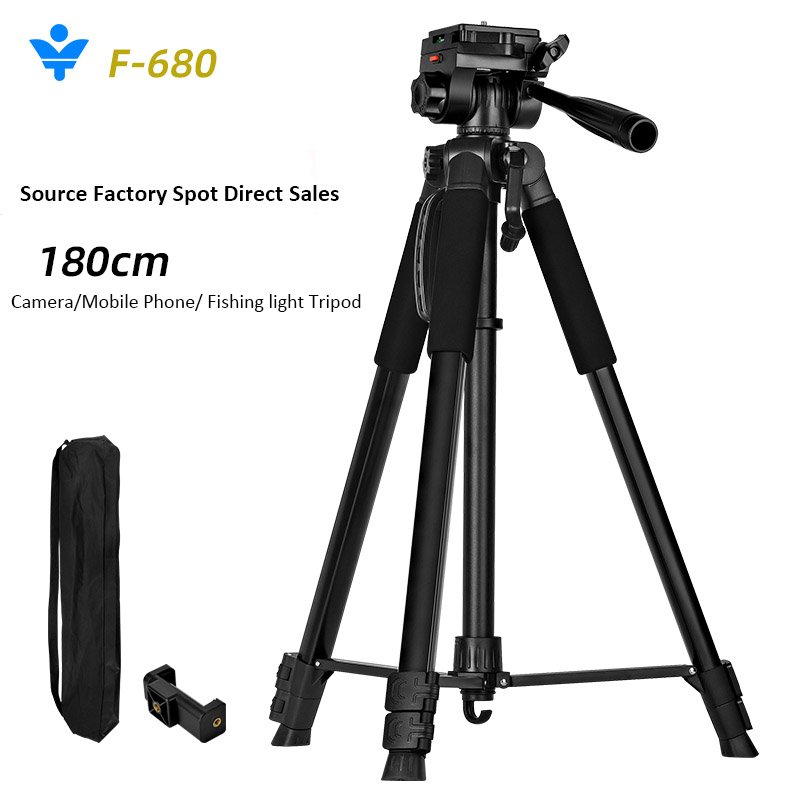 حامل ثلاثي احترافي للكاميرا F-680 بطول 1.8 متر، مصابيح أرضية مرنة، حامل خلفية قائم، حامل هاتف محمول من الألومنيوم شديد التحمل، مناسب للمناسبات