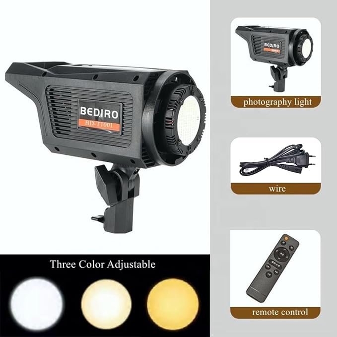 BEDIRO BD-T1001 / BD-400S Bi-Color LED Video Light (2700K-6500K) w/Dimming, Remote, & Universal Mount for Photography/Filming