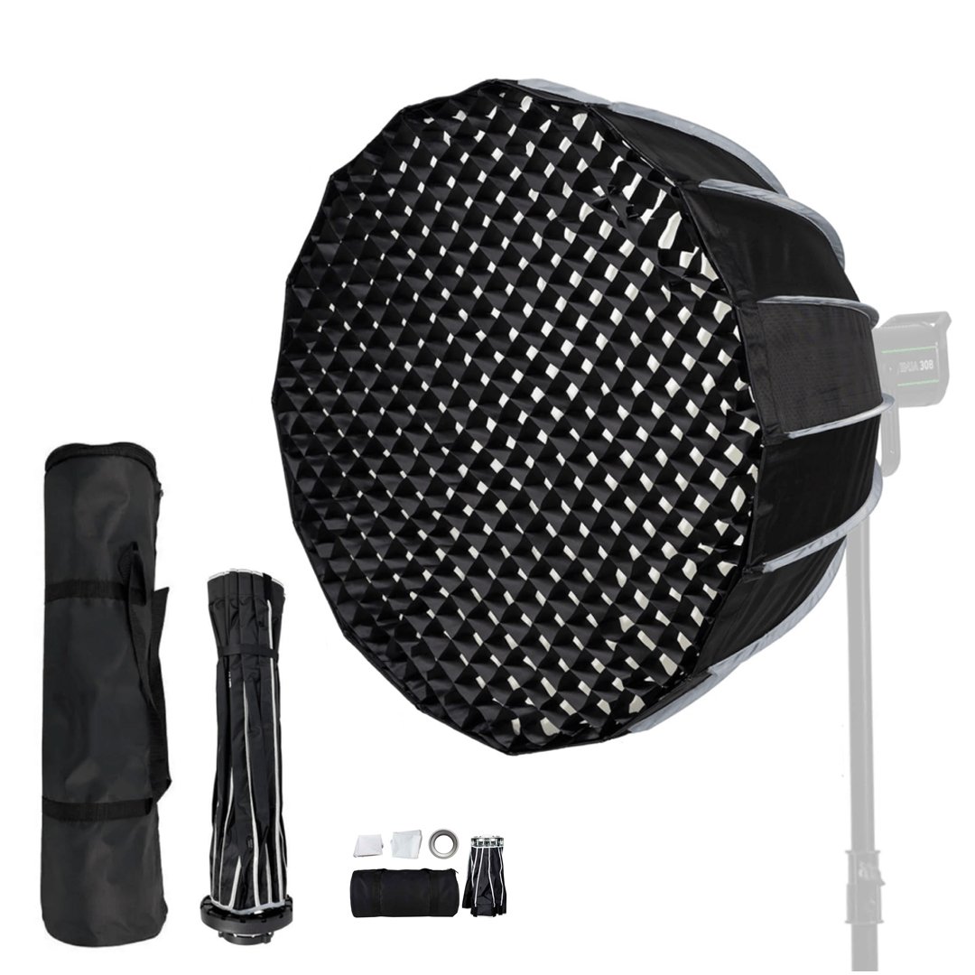 Parabolic Soft box from General features of diffusion for soft, even light in portraits, video lighting, live-streaming, product photography, and other studio applications. The soft box comes with a fabric grid for directional lighting and is compatible with the General other light fixtures.